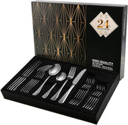 Cutlery Set, 24 Piece Stainless Steel Flatware Set, Silverware Set Service for 6, Dinnerware Utensil Set with Knife, Fork, Spoon, Dessertspoon, Use for Home, Restaurant with Gift Box,FREE AND FAST DELIVERY ONE WEEK.