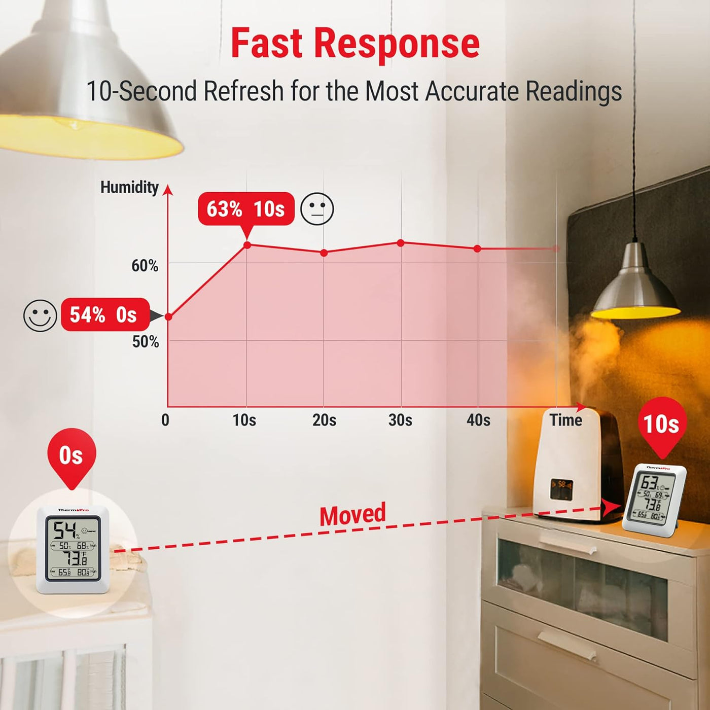 ThermoPro TP50 Digital Hygrometer Indoor Thermometer with Max/Min Records Room Thermometer and Humidity Monitor with Large LCD Display Humidity Meter...