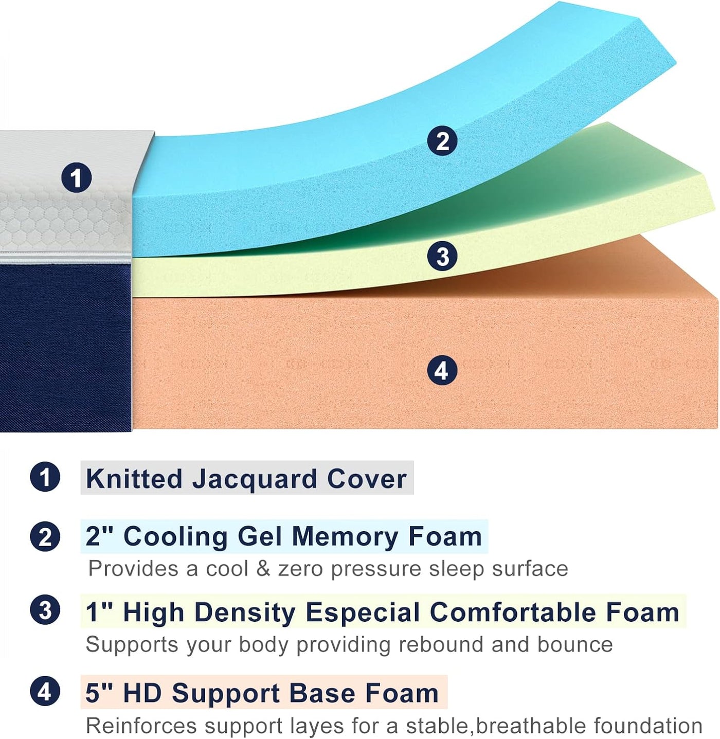 Twin Mattress, Cymak 8 inch Gel Memory Foam Mattress with CertiPUR-US Certified Foam Bed Mattress in a Box for Sleep Cooler & Pressure Relief, Twin Size - Twin / 6 Inch Gel