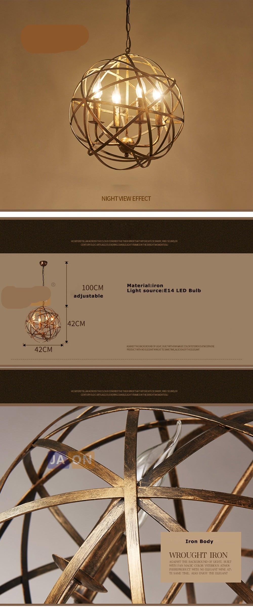Our iron globe pendant lamp, made of a plethora of metal straps, is a traditional modern pendant design that complements a wide range of design aesthetics. The e14 base of the lamp is made of metal material, and the base is inlaid with square crystals, which makes the lamp more stable and beautiful. The iron globe droplight-led installation type is a chain pendant. The same chain length of the light fixtures can be changed to match your selections and ceiling height requirements by unscrewing the tightening pendant lamp. It is a great option for a variety of hanging locations and works with a variety of ceiling styles, including vaulted, sloped, flat, and decorative glass ceilings.