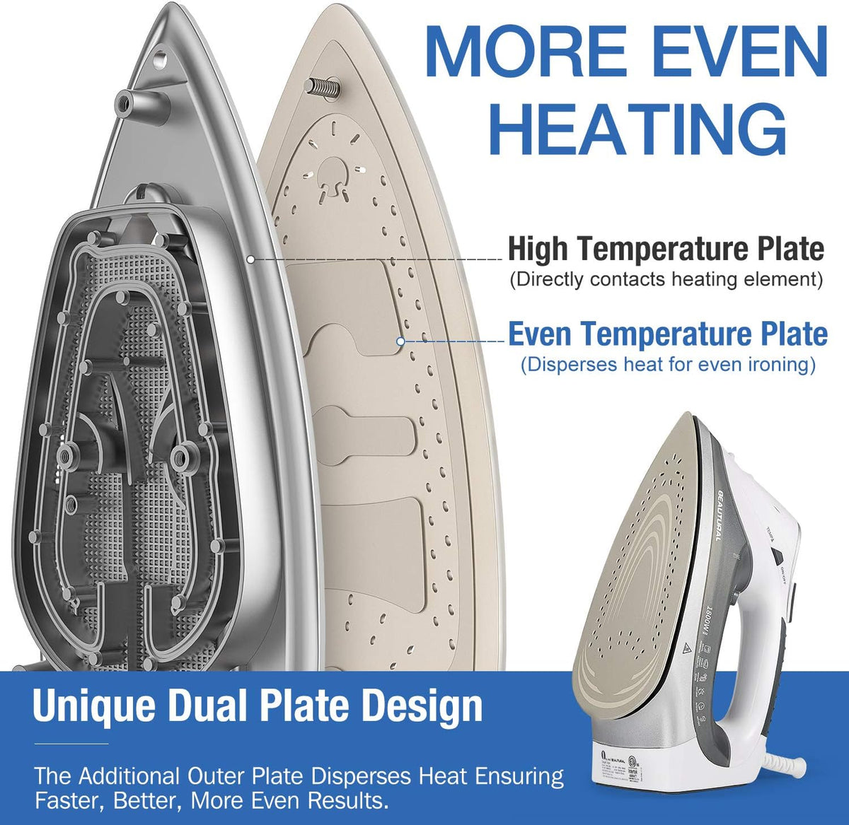 Beutural 1800-Watt Steam Iron with Digital LCD Screen, Double-Layer and Ceramic Coated Soleplate, 3-Way Auto-Off, 9 Preset Temperature and Steam Settings for Variable Fabric